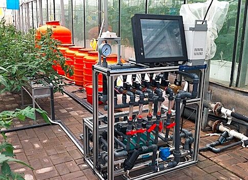 營養(yǎng)液的循環(huán)控制系統(tǒng)是由循環(huán)系統(tǒng)、控制系統(tǒng)及在線監(jiān)測系統(tǒng)組成,通過栽培床和營養(yǎng)液池,還有供液的管道以及回流管道實現(xiàn),是無土栽培中的重要部分。在這個過程中,栽培床通過承載營養(yǎng)液為作為供應(yīng)一些必要的營養(yǎng)和水分,并使作物的生長得到比較好的根際環(huán)境。而營養(yǎng)液則為栽培床承載的營養(yǎng)液提供貯存及供應(yīng)的功能,它通過母液罐、酸堿罐、清水罐幾個部分將溶液透過電磁閥門控制而注入到營養(yǎng)液池。而供液系統(tǒng)則是為栽培床從貯液池運輸出供應(yīng)的營養(yǎng)液,然后回流系統(tǒng)再將再把栽培床的營養(yǎng)液送回營養(yǎng)液池,這樣整個營養(yǎng)液的循環(huán)系統(tǒng)就完成了一次循環(huán)。