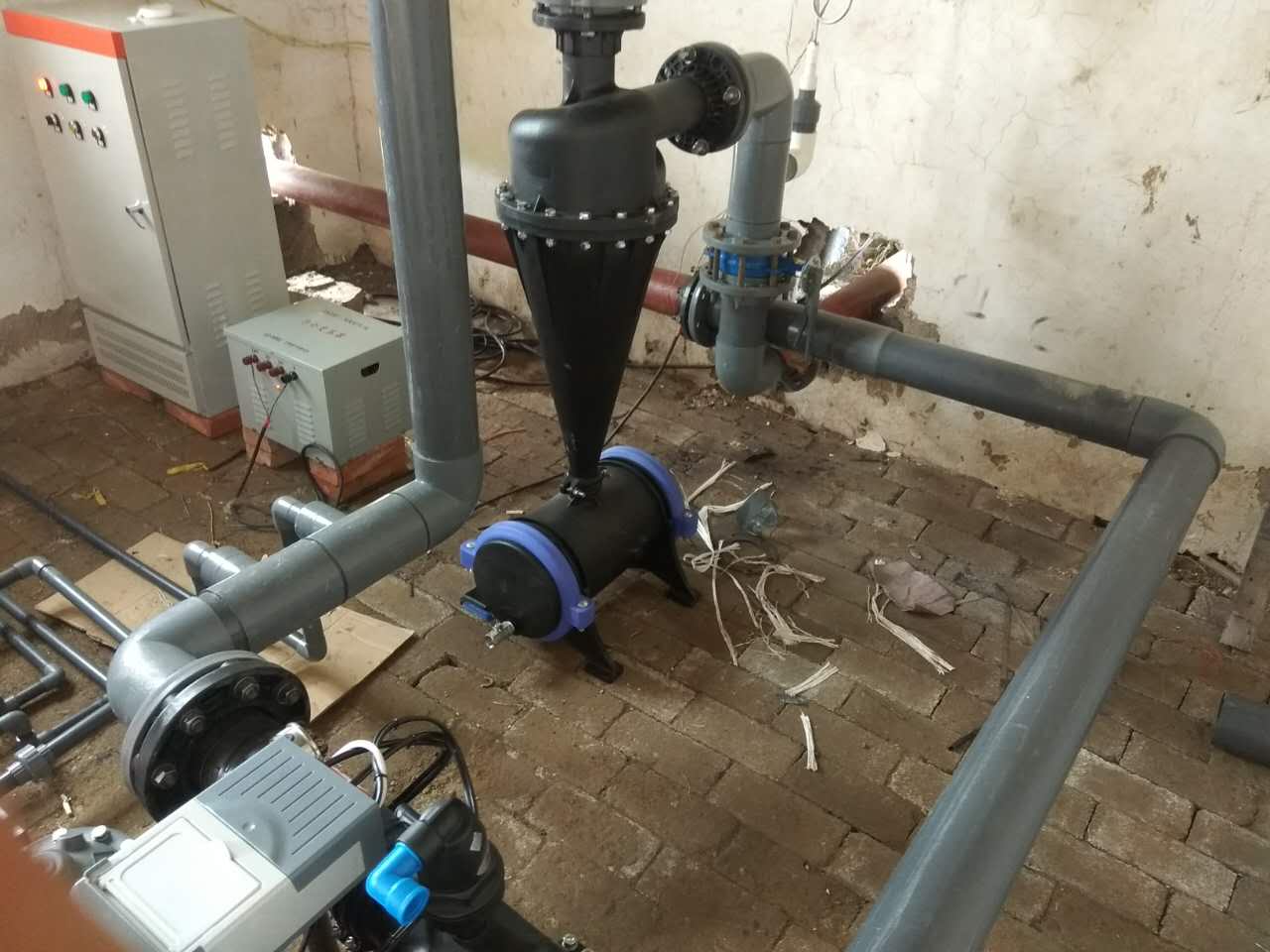 離心式過濾器一般用于含沙量大的地下水和地表水的初級過濾處理,常作為微滴灌系統的水質初級過濾使用。離心式過濾器的工作原理是由高速旋轉的水流產生的離心力,將砂粒和其他較重的雜質從水體中分離出來,它內部沒有濾網,也沒有可拆卸的部件,保養維護很方便。離心式過濾器底部的積沙室必須頻繁沖洗,以防沉積的泥沙再次被帶入系統。對有機物或比重小于水的雜質,離心式過濾器的分離效果很差,只有在一定的流量范圍內,才能發揮出應有的凈化水質的效果或搭配網式過濾器組合使用。離心過濾器的結構設計完全遵循水力學原則,分離效果好。